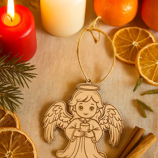 Wooden Angel Christmas Ornament – Cute Laser-Engraved Decoration